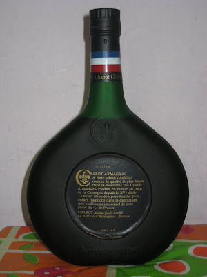 說回這瓶白蘭地,Chabot 是雅文邑品牌中比較"國際化"的,不少免稅店也有其蹤影。這瓶酒是拿破崙級的,傳說是由最少陳年六年的酒混上二十年陳的酒調配而成,瓶裝於傳統磨砂瓶出售。