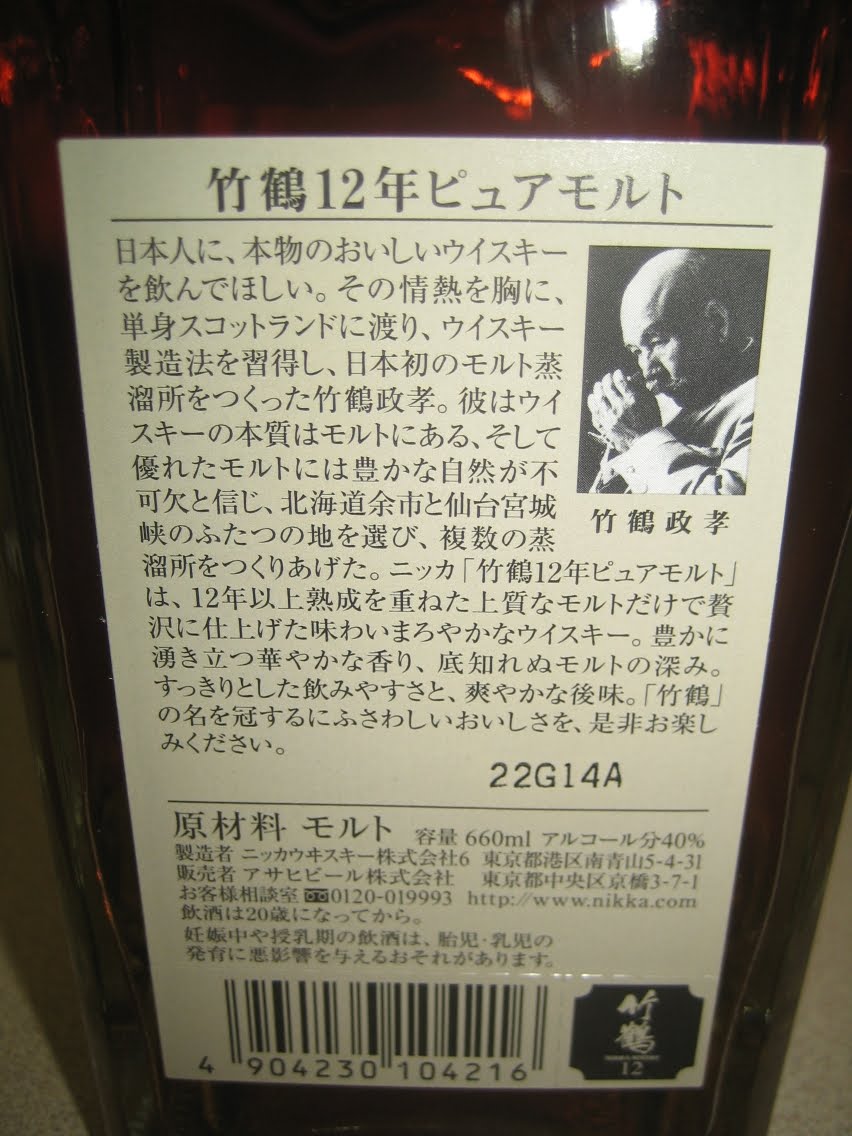 這是一款由 Nikka Whisky 生產的調合麥芽(純麥)威士忌。品牌 Taketsuru 竹鶴,就是被稱為日本威士忌之父的 竹鶴政孝 Masataka Taketsuru (1894 – 1979) 的姓氏。