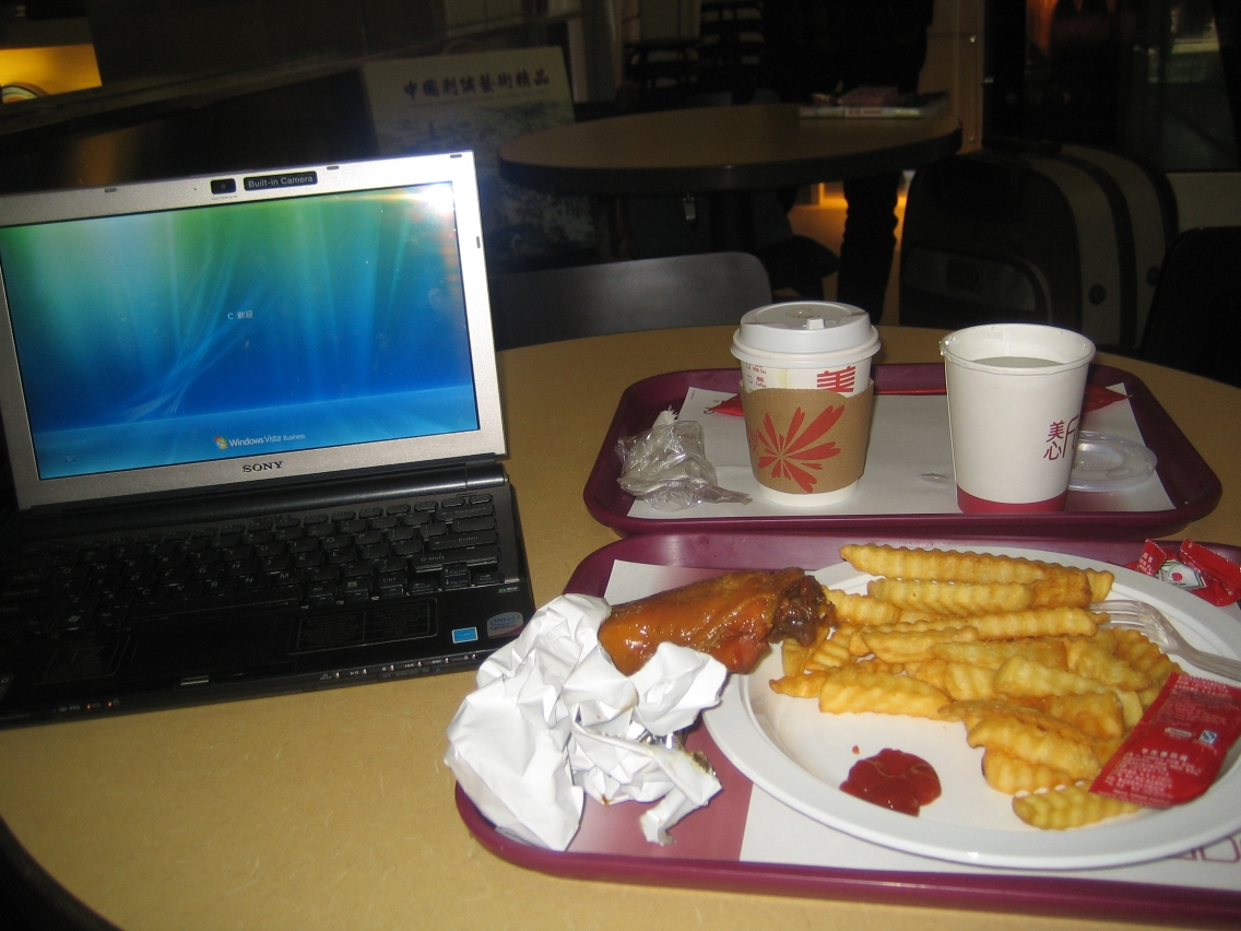還是回港後於機場美心快餐吃的”尾班車”下午茶,收市作價二十港銀,熱辣辣的豉油雞腿及即叫即炸的波浪薯條配上即磨的咖啡,個人來說吃得比較愜意。