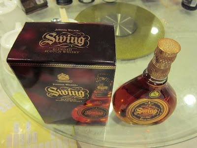 Johnnie Walker 最為人熟悉的,非其"顏色"系列莫屬,紅黑綠金藍,還有新近於某些地區免稅店推出的白金牌。Johnnie Walker 其實還有兩款酒並不是以顏色為標記的,分別是 Premier 及 Swing。這兩款酒的主要市場都不是香港,故此在香港的零售酒行不容易見得到。這兩款酒小弟也有喝過,前者只淺嚐過一兩杯,印象不太深,是好喝不過價錢一點也不便宜,未能提供完整評價。後者在一場酒宴上有幸得嚐,並帶走了百多毫升的樣本回家,可以慢慢細賞撰寫酒評。