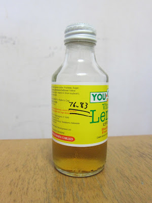 噢,一個檸檬味的健康飲品瓶子,招紙上手書 76.83 這兩組神秘數字 ,內裡盛了些神秘液體,莫非….這是近期流行於夜場的含笑半步癲迷 X 水?
